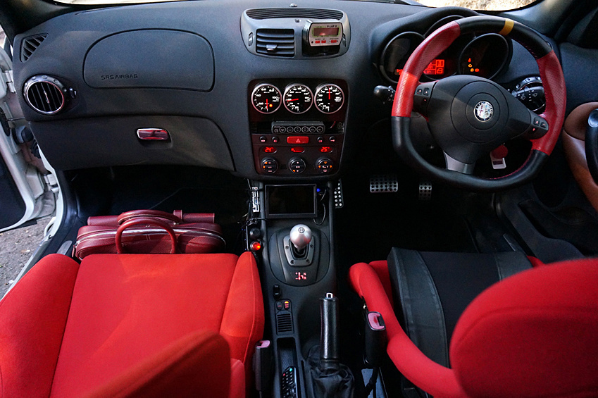 初度登録から20年経ったものの走行距離もさほど伸びておらず、まだ5万キロ半ばですが、内外装の状態も比較的良く、装備もレーシングカーの面影を残す部分も多々あり、鬼門といわれるセレスピードのメカニカル的な不具合もなく、V6の甲高いアルファサウンドを存分に堪能できます。