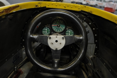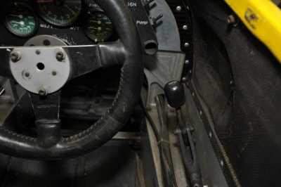当時主流のスクウエアな意匠は、最新の流線形のレーシングカーにはない独特のスパルタンな雰囲気。保管状態での取材だったのでトラベルタイヤを履いたままの撮影となったが、スリックタイヤを履けばその迫力が一気によみがえるはず。各所にオーバーホールやレストアが必要だが、それさえ済めば、F2カーのパフォーマンスを存分に味わえるだろう。