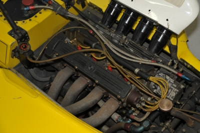 BMW M12/7は排気量1,991cc。BMWの市販車用エンジンM10をルーツとし、レース用としてヨーロッパF2選手権や全日本F2選手権で一大勢力を誇っていたエンジンである。日本では、東名自動車やケンマツウラレーシングサービスなどの名チューナーも手掛けていた。このMARCH 85JがBMW M12/7でレースを走っていたのは1985年と1986年全日本F2選手権・開幕戦鈴鹿で、同第2戦富士からは、より戦闘力の高いYAMAHA OX66にスイッチしていた。しかし、M12/7は市販車のBMWの旧車に載せることができるため、BMW旧車ユーザーからの人気は現在でも高く、このエンジンを所有しているだけでも価値がある。ただ、実走行から10年以上経過しているため、オーバーホールはマストだろう。ECUも付いていると思われたが、本体をハッキリとは確認できなかった。バッテリーなど電装部品も新しくする必要がある。