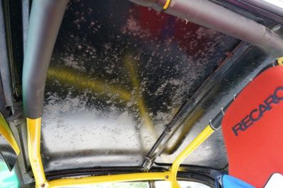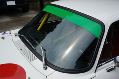 フルレストアされているだけあって、この年代にありがちな塗装浮きやサビは無く、色つやも申し分ない。イエローのホイールやフロントウィンドウのグリーンのハチマキがボディに映え、オーナー氏のセンスの良さが伺える。