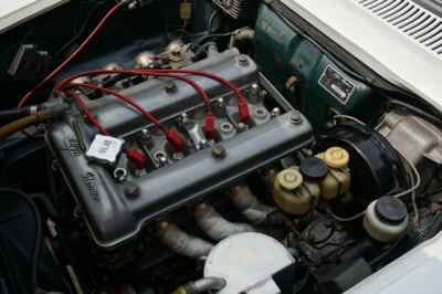 往年の名車『6C1750グランド・スポルト』にあやかって命名された1750GTVは、既に40年以上も前のリリースながらも、オールアルミ製のツインカムエンジン、5速のフルシンクロミッション、4輪ディスクブレーキなど、その名に恥じない、そして現代のスポーツカーと比べても遜色のないメカニズムを有する車種である。