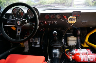 そして今回紹介する個体は、ほぼ全ての部分に手が入ったジュリアクーペとなる。元々は中古平行でノーマルのまま国内に入ってきたようだが、草レースをオーガナイズしているスタッフの手によってサーキット仕様になり、現オーナーの元に渡った後に完全なるレーシング仕様になったようだ。