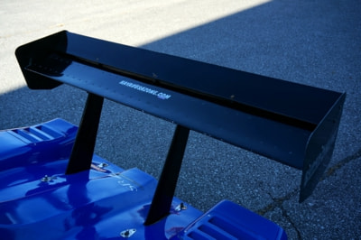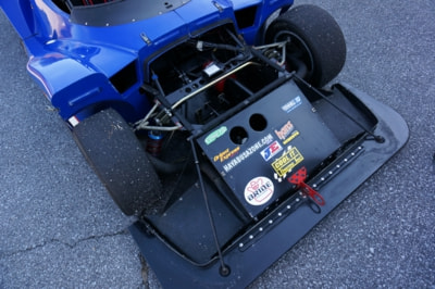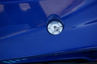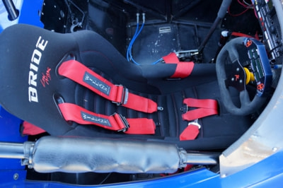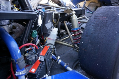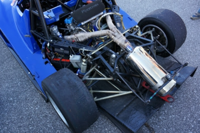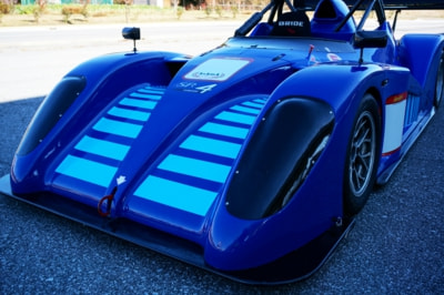 鮮やかなコバルトブルーが映えるボディは、いわゆる量産型の一般車両と比べると塗装の仕方や建て付け具合は大雑把な感じではあるが、F3などのフォーミュラマシンと比べれば同程度。目立つ様なキズや凹みもなく、総じてキレイな仕上がりだ。