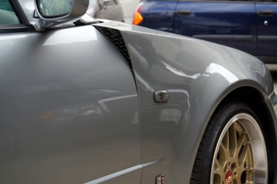 今回紹介するのは、初期型のベースグレードのZ-tune仕様。エンジンはノーマルながらも、走行距離も少なめで内外装の状態は良い。しかも、Z-tune専用に設計されたCFRP製のブリスターフェンダーやフロントバンパースポイラーなどをほぼフルエアロ状態でボディに纏い、明らかにノーマルとは一線を画する佇まいだ。
