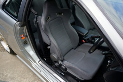 メーター類がフルスケールのニスモメーターに換装されている他はノーマルが維持されている内装は、ヤブレやホツレ、目立つような汚れもなく、クリーンな空間が保たれている。