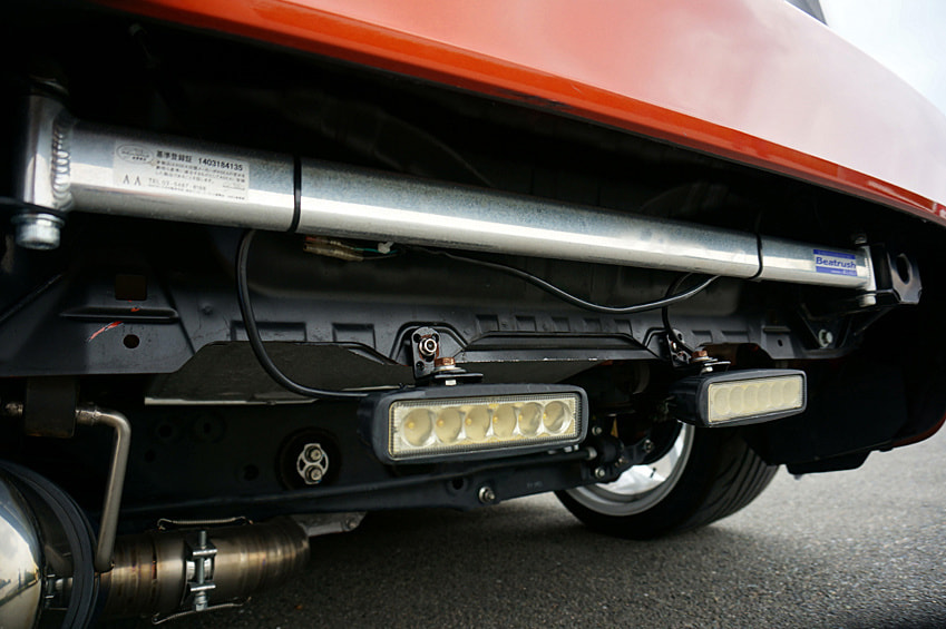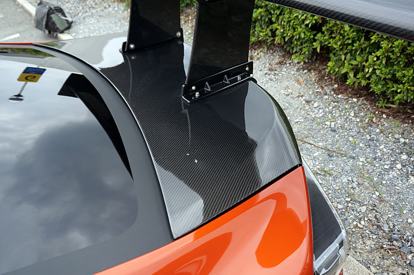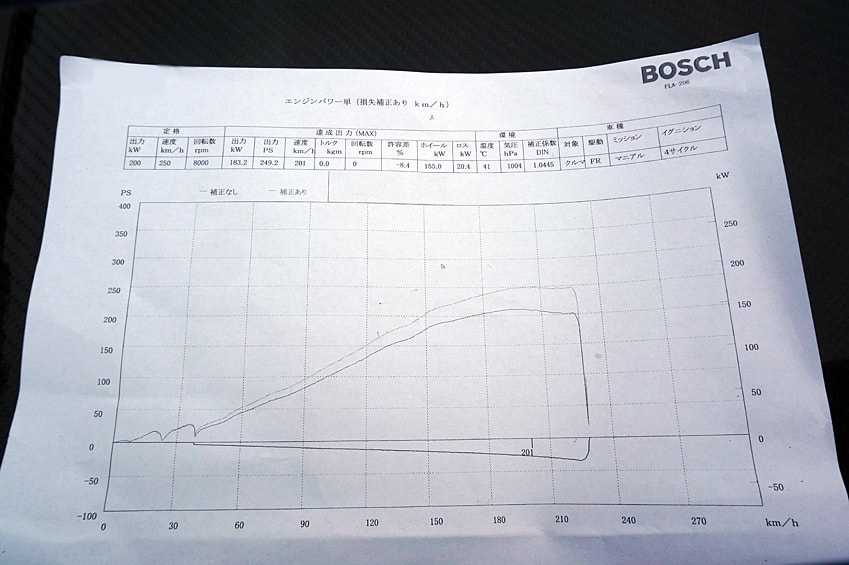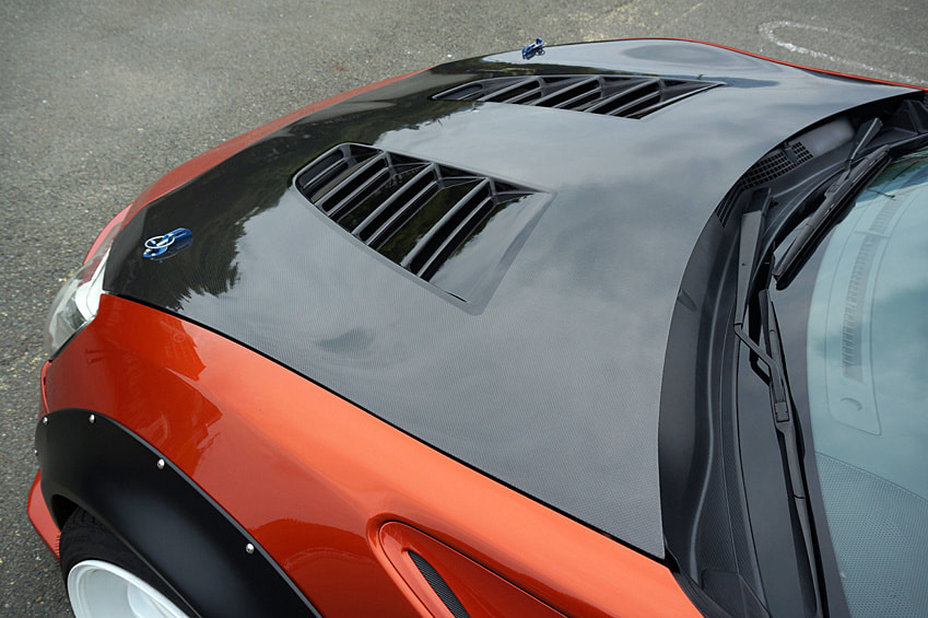 95mmものワイド化を施したオーバーフェンダーや特注のGT300仕様のカーボン製GTウイングなど、チューニングショップのデモカーとして扱われる程に完成度の高い迫力のフォルムと、背後から強烈にプッシュされるようなエクストラパワーを有した本車両は、ノーマルのNAでは絶対に到達のできない未知なる領域に達している。