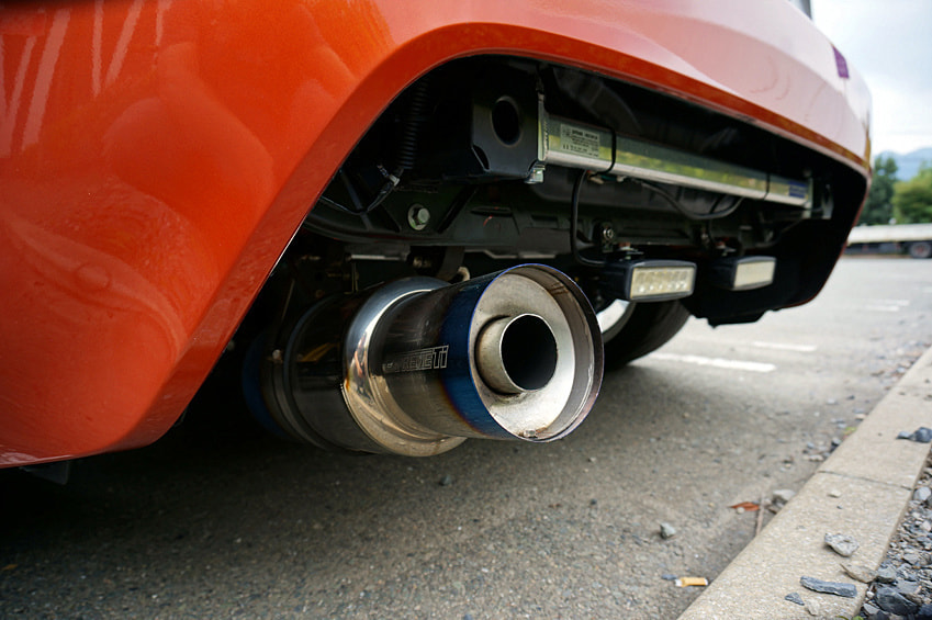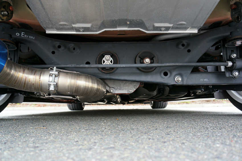 BLITZ製のエキゾーストマニフォールドからフロントパイプを経て、SARD製スポーツキャタライザーと5ZIGEN製オーバーパイプを抜け、東名パワード製EXPREME Ti フルチタンマフラーに至るフルエキゾーストシステムを構築。パワー&レスポンスアップに大幅に役立っているのはもちろんの事、サイレンサーを外せば野太くも乾いたボクサーサウンドを奏でる。ノーマルの触媒とリヤエンドマフラーもあるので車検も全く問題無い。