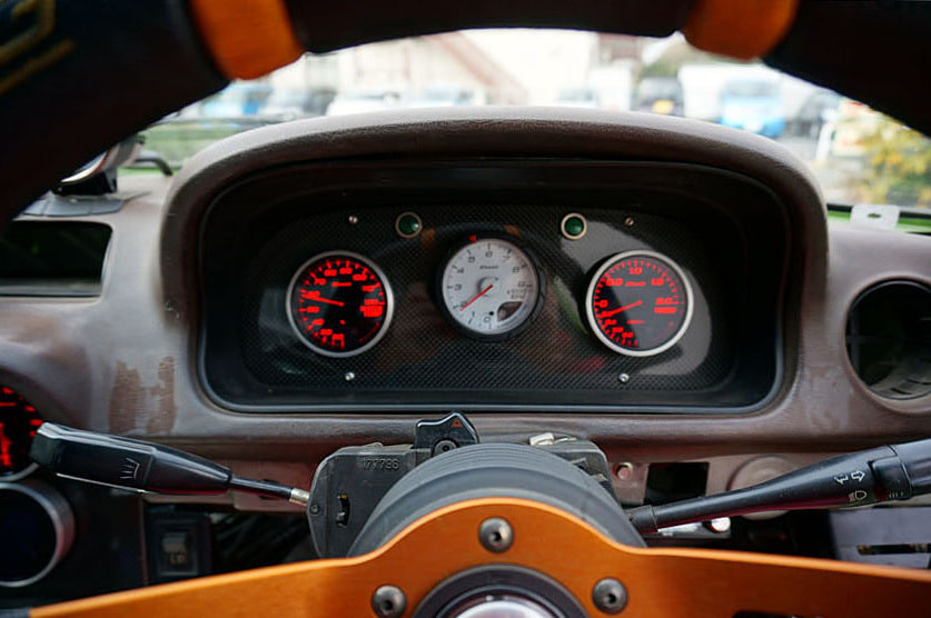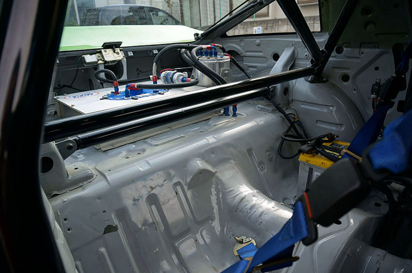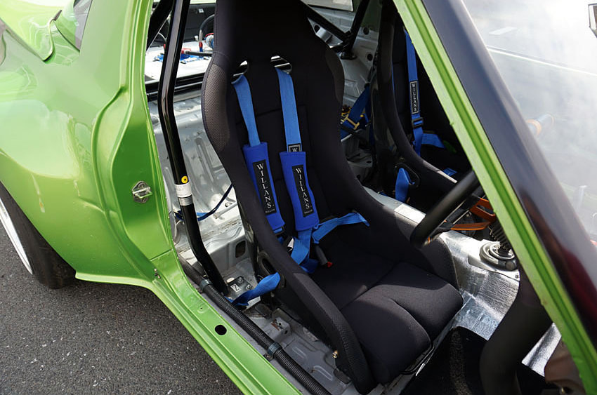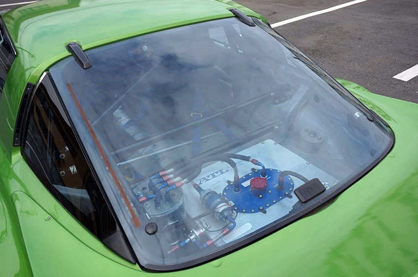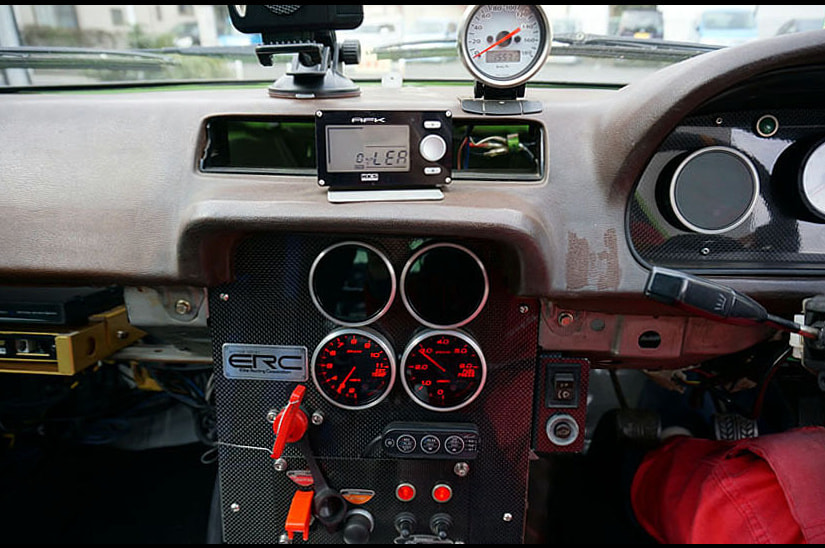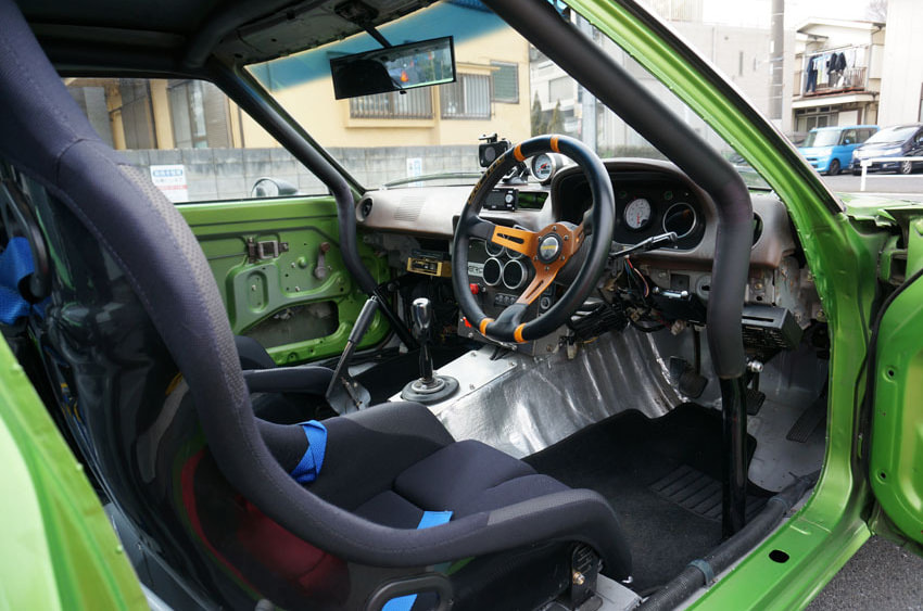 ワンオーナーで比較的低走行の無事故車を仕入れ、ホワイトボディから新品パーツで全てを組み上げ、ERC製コンプリートエンジン、13B-REWブリッジポート、フルスポット増し、IMSAワイドボディキットなど、全てレーシングスペックで製作。腕に自信のある拝なら筑波サーキット本コースで1分を切ることも不可能ではないという。
