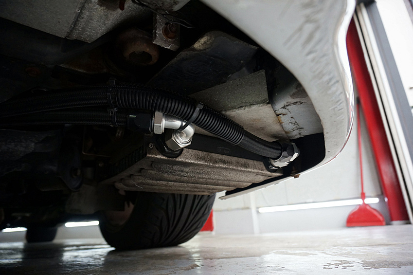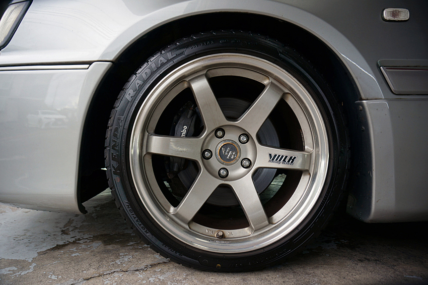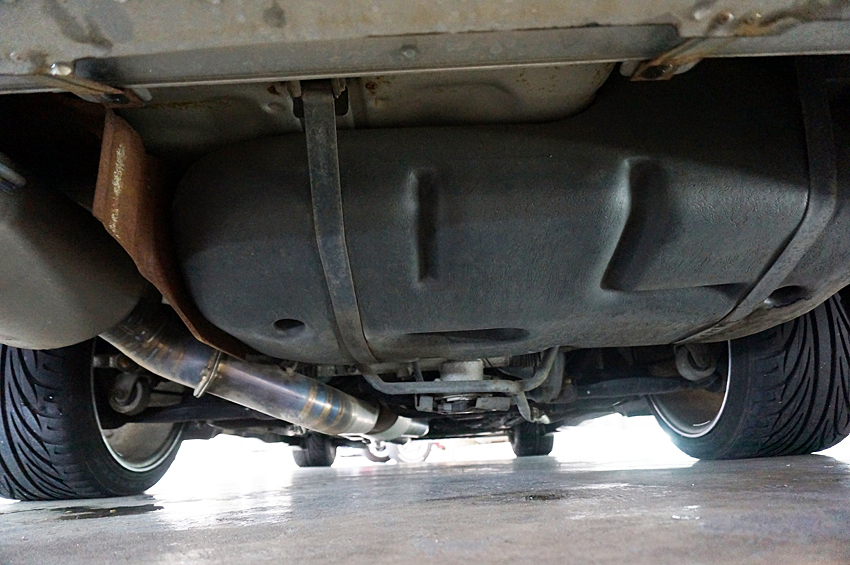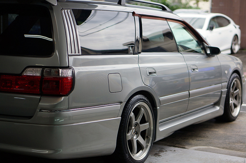 低速トルクを補うためのRB26改29エンジンを筆頭に、デュアル可変バルタイ、チタン製ワンオフフルエキゾースト、フルコン制御など、詳細は下記に譲るが、4ドアで荷物もたくさん積めて、1700kgちょっとの個体を鬼トルクでストレスフリーな加速感……というよりは、むしろフルチタンの快音と共に織りなす超絶痛快なカタパルト感とでも言えようか。それはゼロヨンで名を馳せた某チューナーならではのテイストに他ならない。