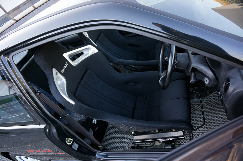 というのも、程度の良いRX-RAがなかなか出てこないことに痺れを切らしたオーナーは、サビなどの傷みが最小限のRX-Rを購入し、ドンガラ状態にした上で徹底的なサビ対策を実行。そして内外装のパーツは、一部を除き、ほぼRX-RA純正かSTI製に全交換。そして肝となる足回りはオーリンズの特注、ミッションは5速クロス、エンジンは10,000rpm仕様のスペシャルチューンとし、軽とは思えないパワー感と高いスタビリティを保てるように仕上がっている。