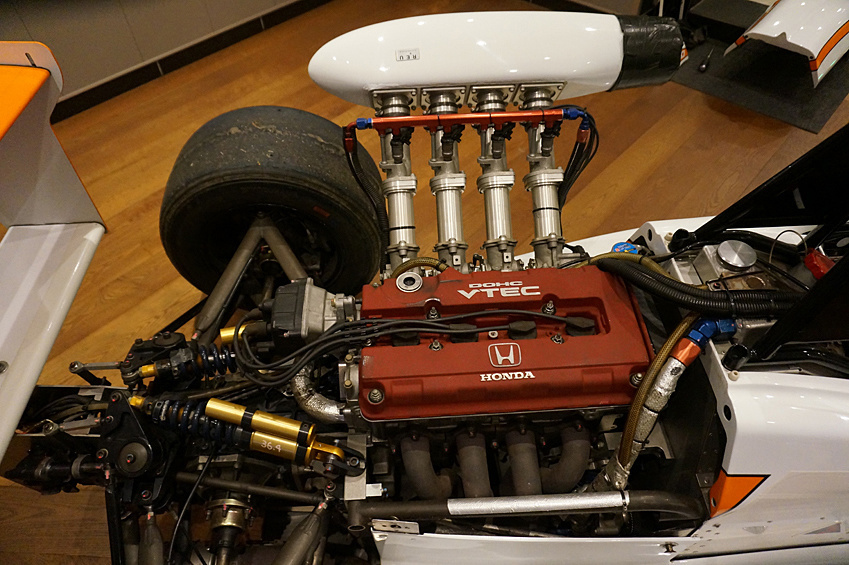 エンジンは、F4用として戸田レーシングがチューンした1796cc 水冷直列4気筒DOHC16バルブのB18Cユニットを標準装備。170ps以上/6600rpm、22.5kgm以上/4600rpmというスペックを誇るが、現オーナー所有以前よりチャンピオンを何度か獲った車両らしいので、何らかのチューンが施されている可能性がある。いずれにしても、レーシングエンジンらしい溢れ出るパワー&トルクを緻密に制御した珠玉のユニットだ。