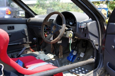 外装同様に、内装も古びた感じは否めないが、サーキットに持ち込めばそんなことは関係なく、機能的にすべてが配置されていることに気づくだろう。もちろん、全ての電装系パーツは機能する。