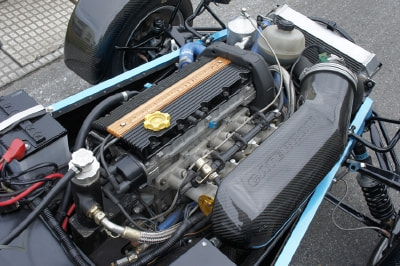 1トンあたり500psを発するということがネーミングの由来となっている通り、本車両もドライカーボンがふんだんに使われた460kgの超軽量な車重。それに、1800ccのレーシング・チューンが施されたローバーKシリーズ・エンジン(直4、DOHC16バルブ)から230psのパワーが炸裂する。
