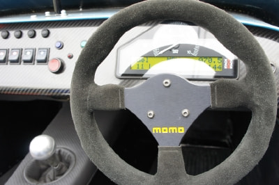 ダッシュボード部分はもちろんのこと、シートの座面部分もカーボンとなり、まさにレーシングカー状態の内装。もちろん、計器類など全てのパーツは機能する。