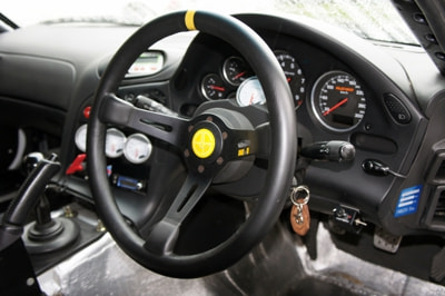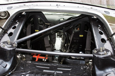 コクピットも当然のことながらスパルタンな雰囲気で、内張りは鉄板剥き出し、入り組んだロールケージや追加メーターなどがその気にさせる。